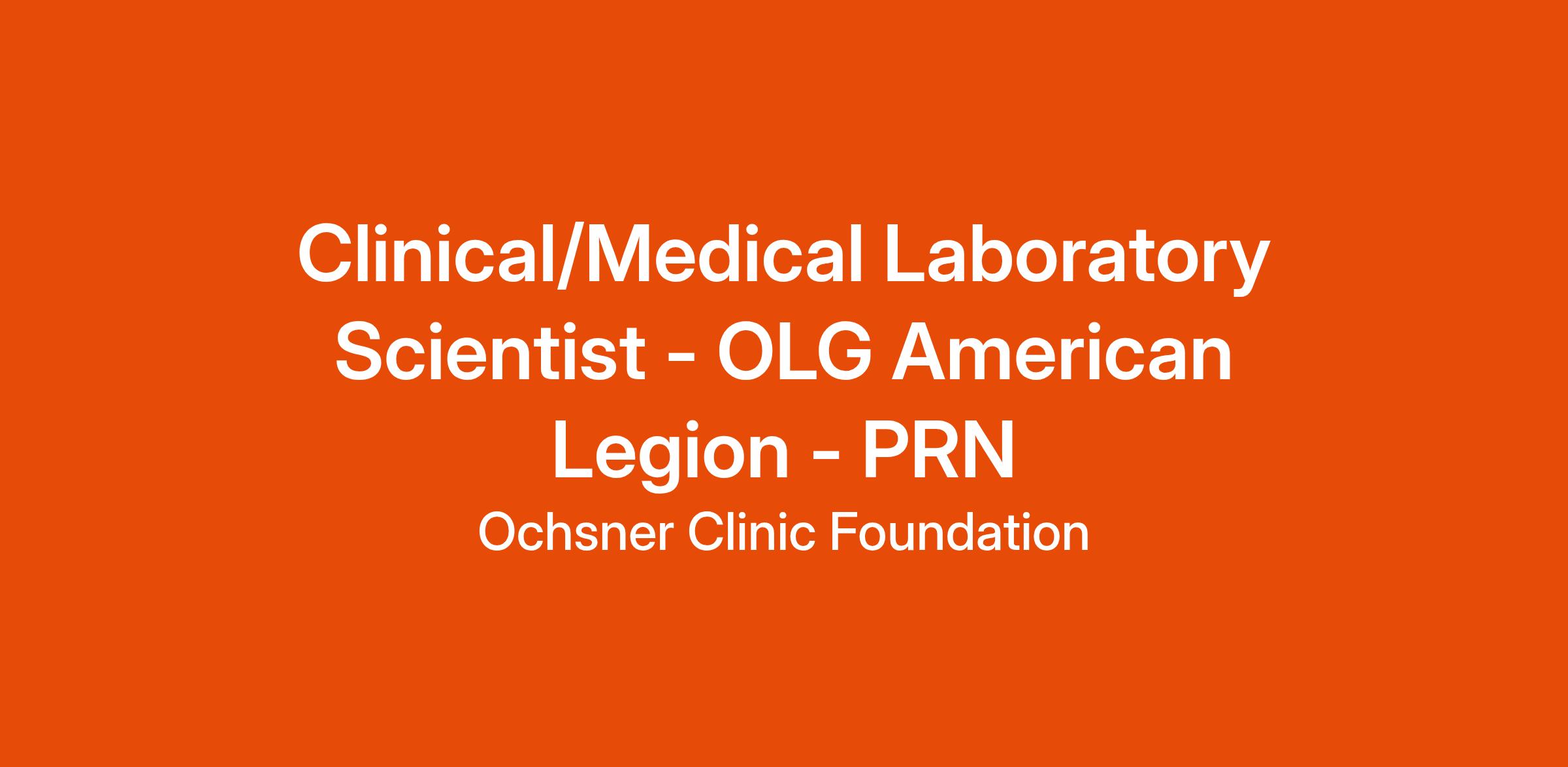 Ochsner is an equal opportunity employer. All qualified applicants will receive consideration for employment without regard to any legally protected class, including protected veterans and individuals with disabilities.