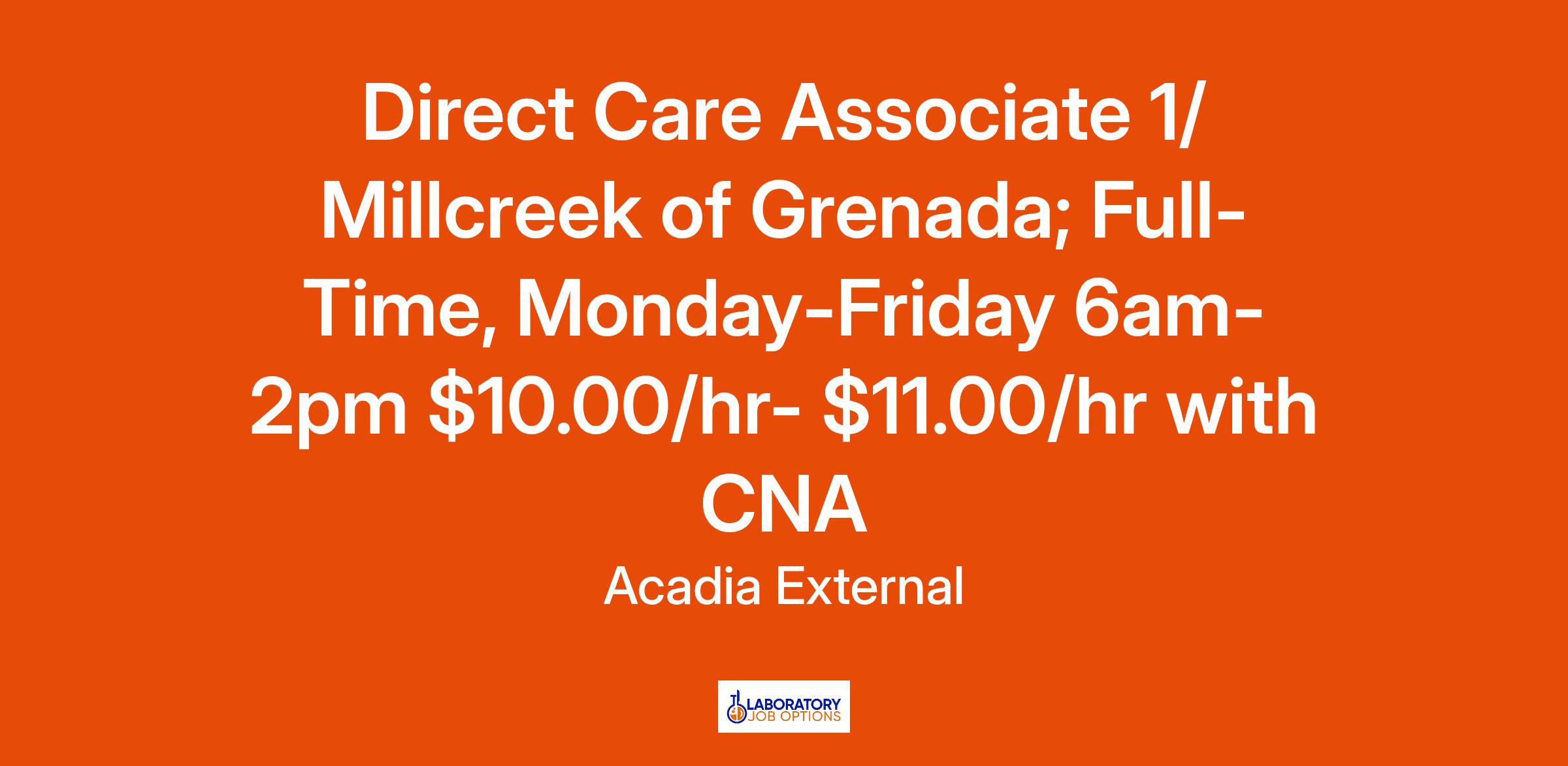 Direct Care Associate 1/ Millcreek of Grenada; Full-Time, Monday-Friday 6am-2pm $10.00/hr- $11.00/hr with CNA