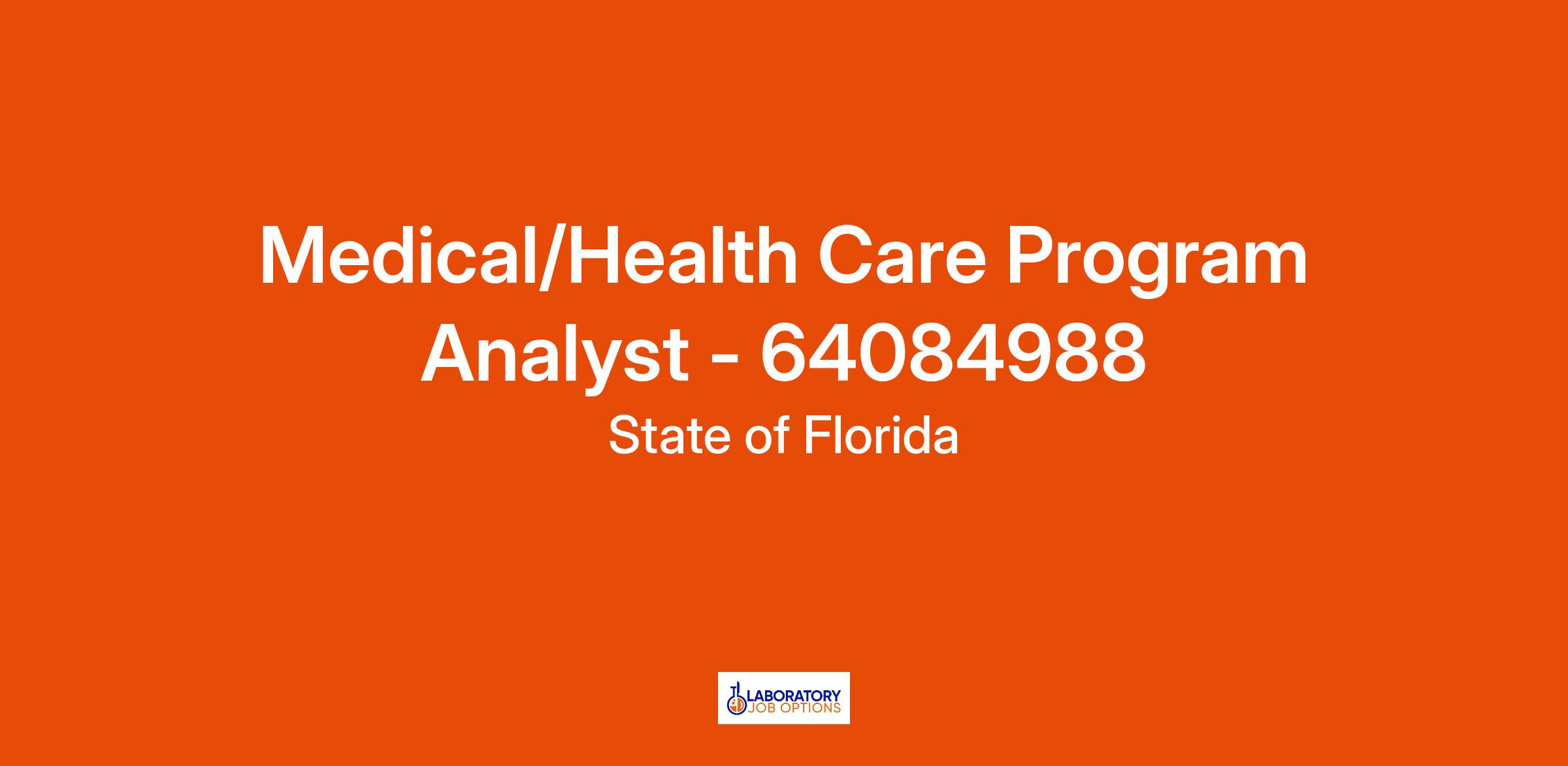 Working Title: MEDICAL/HEALTH CARE PROGRAM ANALYST - 64084988