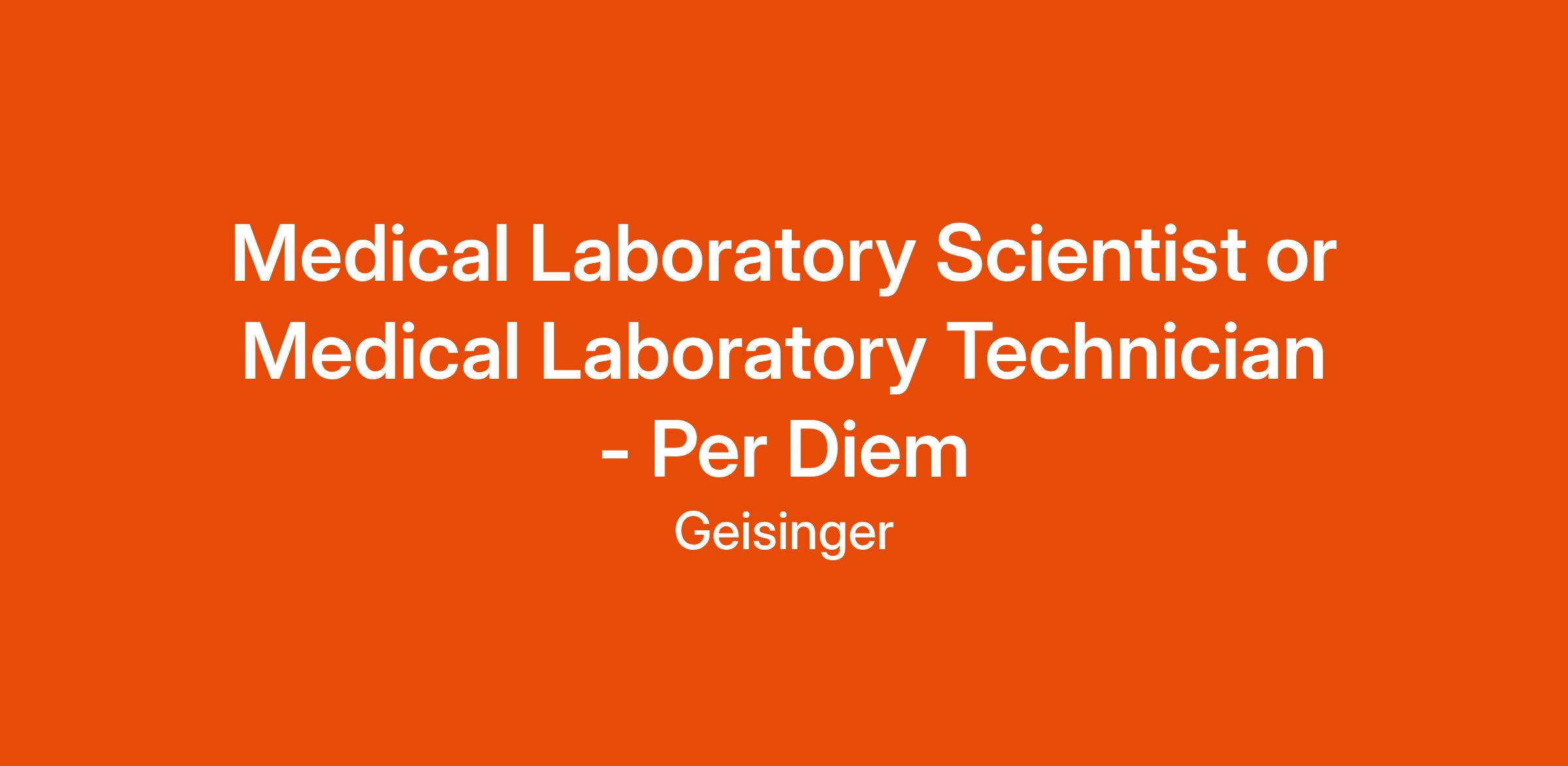 Communication, Laboratory Equipment Operation, Laboratory Results Reporting, Laboratory Services, Military experience as a Clinical Laboratory Scientist 71E, Medical Laboratory Specialist 68K, Medical Laboratory Specialist 92B, Medical Laboratory Technician Advanced HM-8506, Air Force Medical Laboratory Specialist (4T0X1)/ Biomedical Laboratory Officer (43TX), or other similar specialty will be considered., Organizing, Preceptor Skills, Time ManagementOUR PURPOSE & VALUES: Everything we do is about caring for our patients, our members, our students, our Geisinger family and our communities.