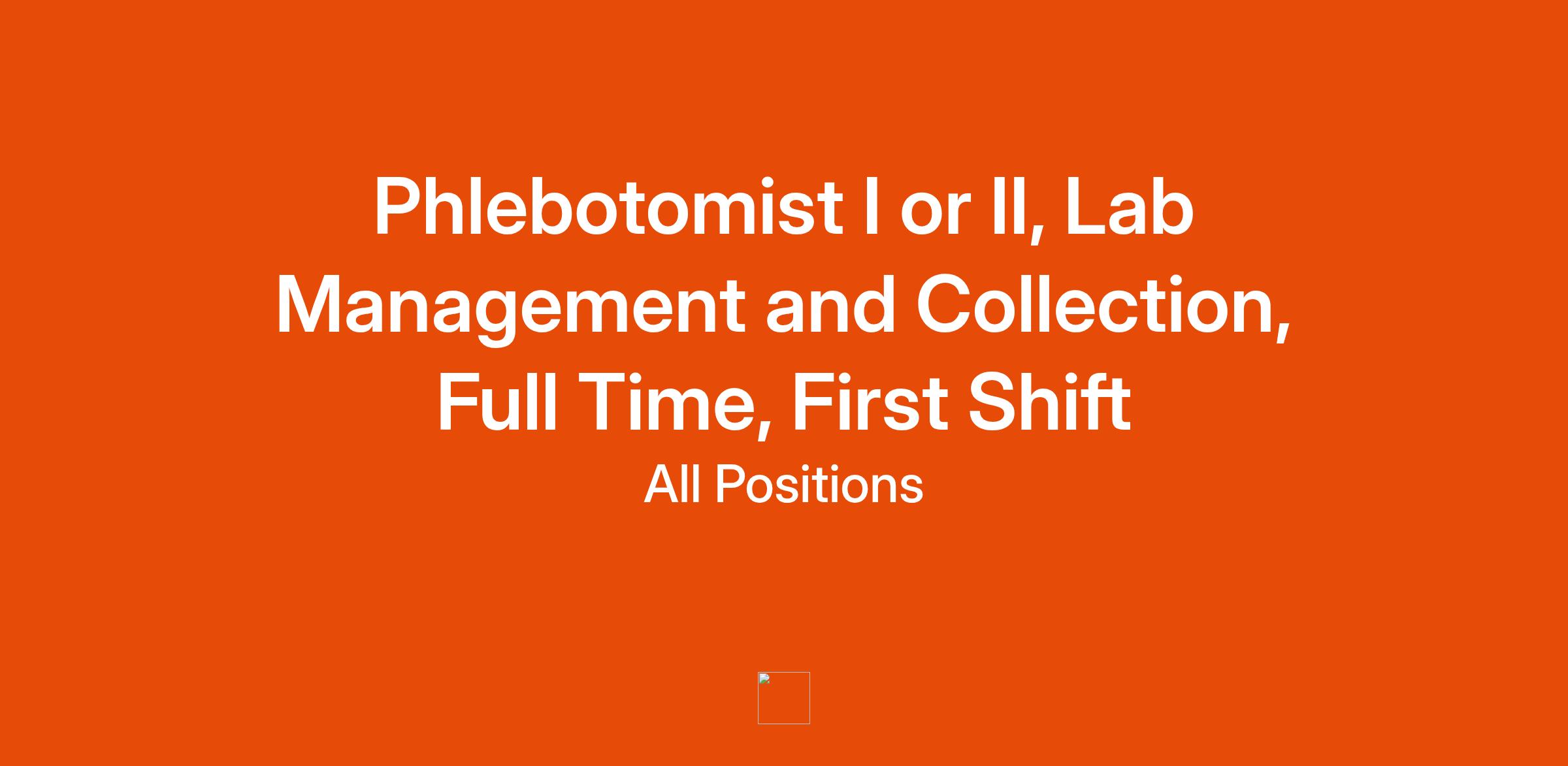 Phlebotomist II - Must have national certification. Experience preferred, but also open to new graduates with state or national certification.