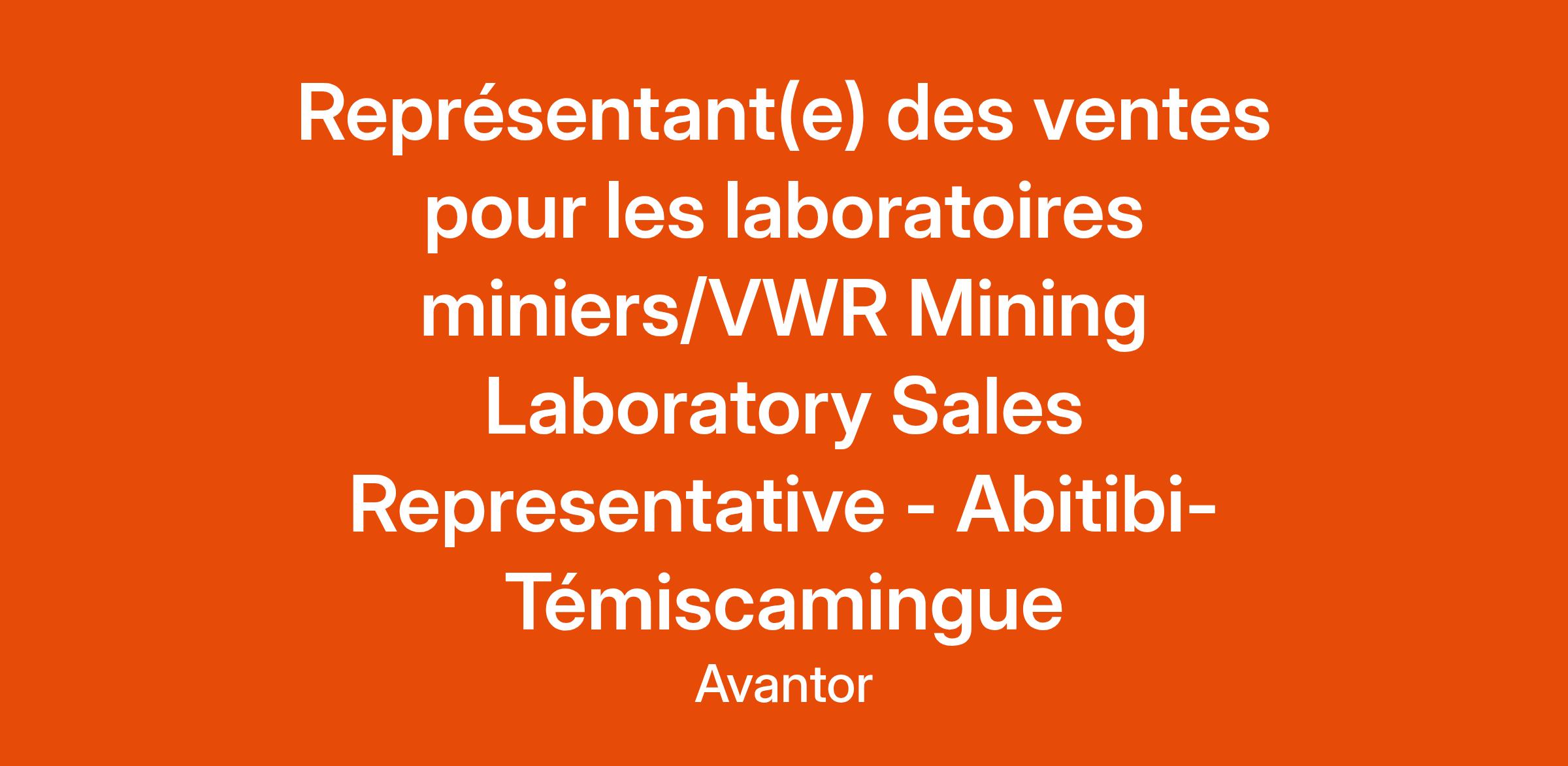 Avantor est à la recherche d'un(e) Représentant(e) des ventes dévoué et plein d'énergie pour maintenir et faire progresser nos efforts de ventes en laboratoire miniers. Il s'agit d'un poste à temps plein et à distance. Vous aurez l'occasion de vendre de façon consultative le vaste portefeuille de produits et services d'Avantor à un groupe diversifié de clients actuels et potentiels. Si vous avez une passion pour la science et que vous aimez interagir avec des professionnels, qu'il s'agisse de clients ou de pairs, parlons-en!