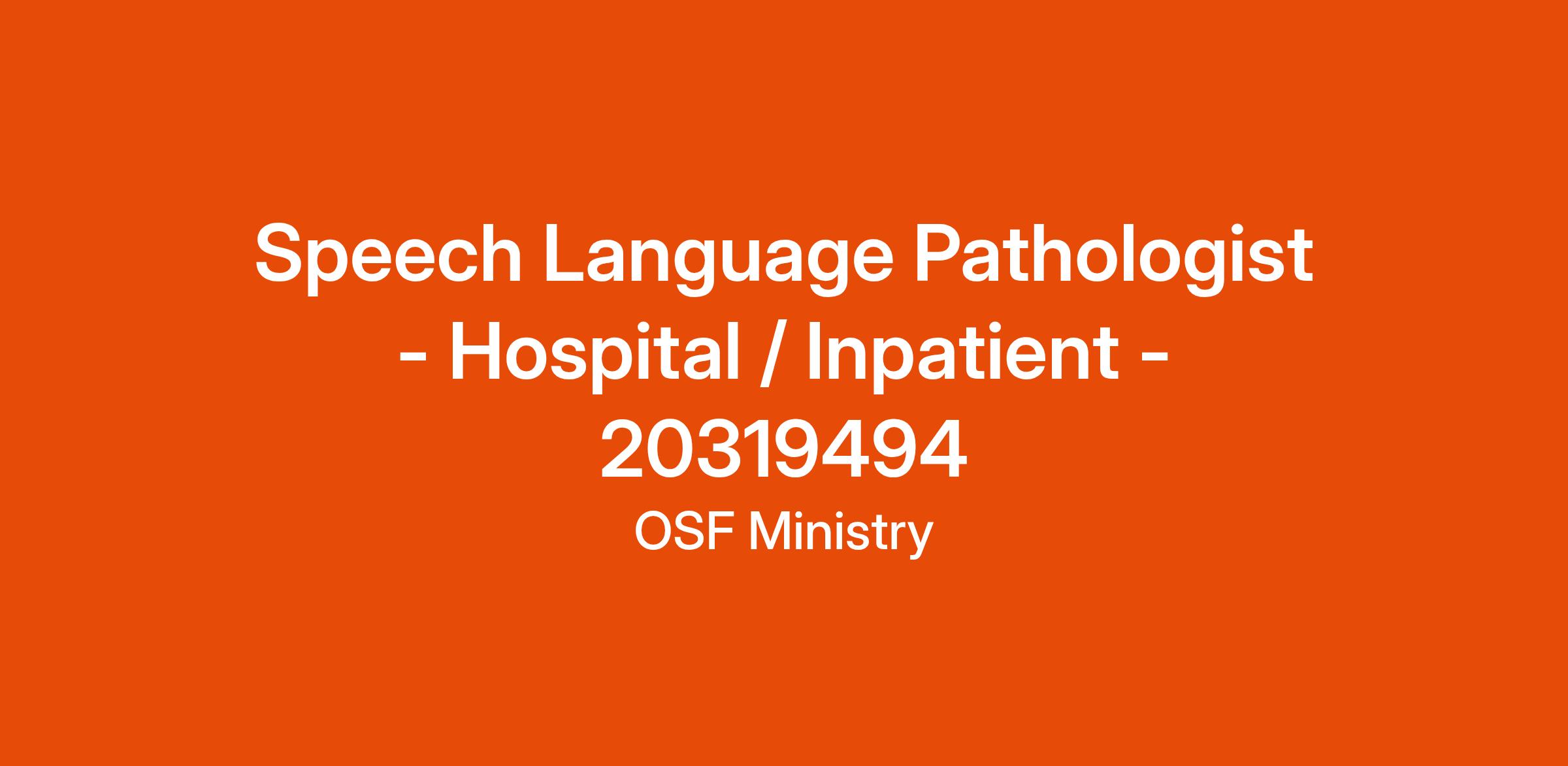 Speech Language Pathologist - Hospital / Inpatient - 20319494