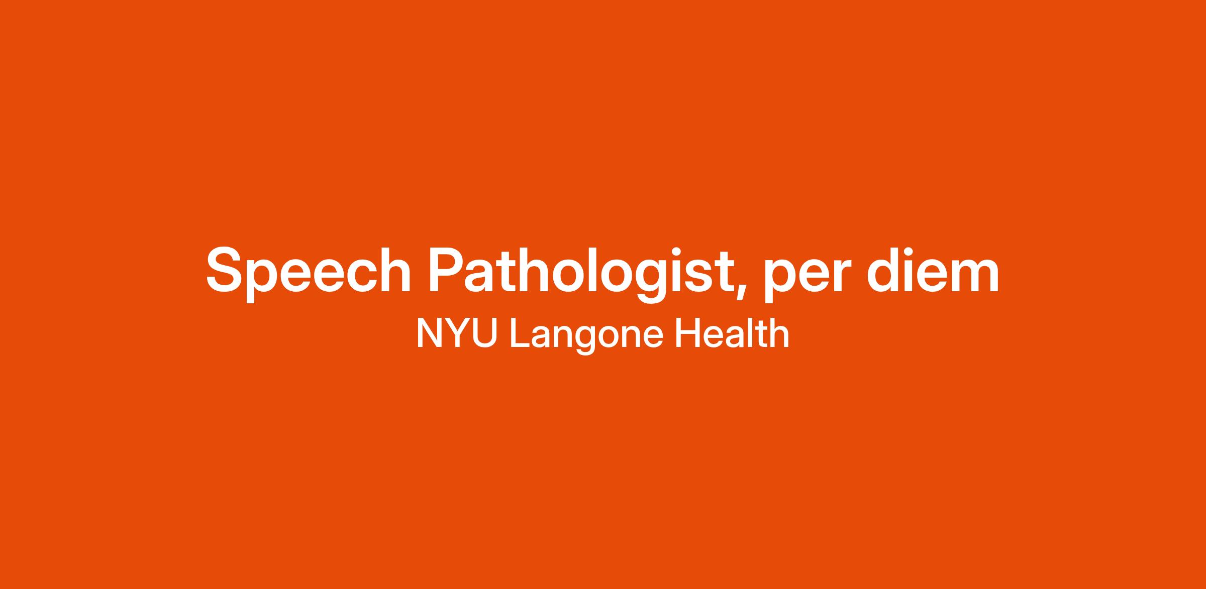 We have an exciting opportunity to join our team as a Speech Pathologist, per diem.