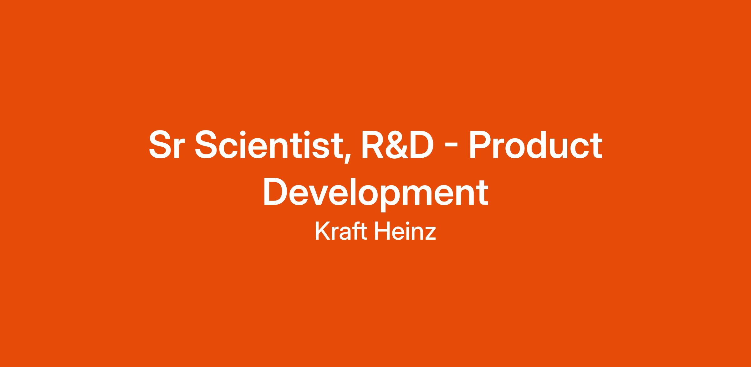 Are you passionate about Food innovation and ready to make a significant impact on iconic brands? Join the dynamic and cross-functional team at Kraft Heinz Research & Development as a Sr Scientist! We are seeking an exceptional individual to lead product development projects across both our Cream Cheese category and Kraft Heinz Not Co Joint Venture. The candidate will be leading and driving technical projects to meet business initiatives focused on growth, productivity, ESG, and brand maintenance.